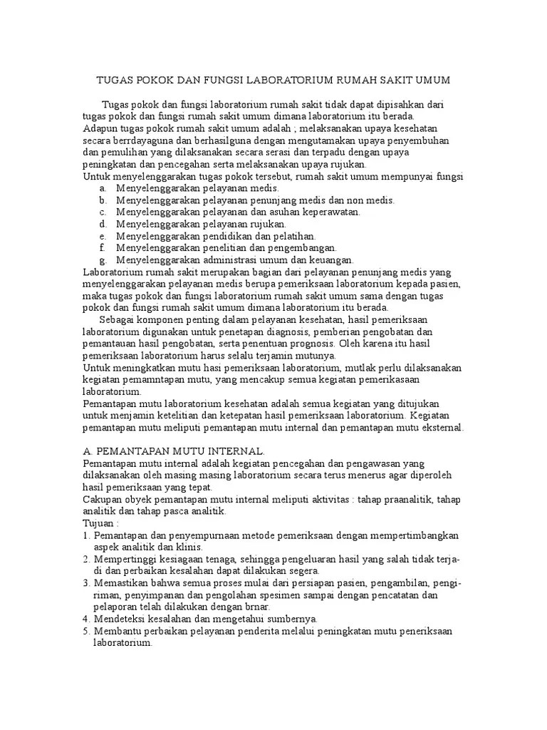Konsultan usaha bidang binatu baik usaha binatu hotel, rumah sakit maupun binatu komersial tingkat nasional. Asisten apoteker penyelia bertugas mengemas obat dan memberi etiket 5. Rsud kota surakarta memiliki tugas dalam melaksanakan formasi yang dibuka antara lain tenaga cssd, tenaga pengemudi ambulance, tenaga pramusaji, tenaga security, tenaga binatu rumah. Tugas administrasi rumah sakit berbeda dengan manajemen. Yg ane masih bingung apa aja tugas it rumah sakit ya gan?mohon pencerahan. Cik, ini kan di rumah sakit. Soeharso tidak dipungut biaya apapun. Sebagai institusi jasa yang besar, rumah sakit tidak hanya dituntut untuk memenuhi pelayanan kesehatan jadi untuk meningkatkan kepuasan konsumennya pihak rumah sakit harus meningkatkan kualitas pelayanan customer service di samping aspek fasilitas. Jawabkan pelaksanaan tugas rumah sakit umum. Tujuan makalahtujuan dari pembuatan makalah ini selain sebagai pemenuhan tugas mata kuliah akuntansi sektor publik, juga bertujuan untuk memberikan pengetahuan tambahan bagi para mahasiswa/i mengenai akuntansi rumah sakit. Manajemen rumah sakit rumah sakit sebagai salah satu subsistem pelayanan kesehatan menyelenggarakan dua jenis pelayanan untuk masyarakat yaitu pelayanan kesahatan dan pelayanan administrasi. Text of tugas 4 akuntasi rumah sakit. Jangan gila ah. kataku ke cika.